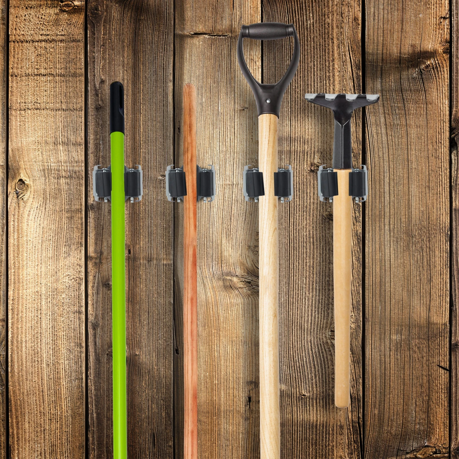 Ärgern Sie sich immer wieder über Gerätschaften, die überall auftauchen, nur nie dort, wo Sie sie benötigen? Mit dem Gerätehalter im 100er Set bereiten Sie diesem Spuk ein Ende. Die Rollen aus abriebfestem Gummi passen sich der Griffstärke an und sind schonend zu Schaufel, Besen und Co. Im Abstellraum, Schuppen oder in der Garage sorgen Sie mit den Stielhaltern für Ordnung. Schrauben oder hämmern Sie die Halter an Wände oder Türen – die dazu erforderlichen Löcher sind bereits vorhanden.