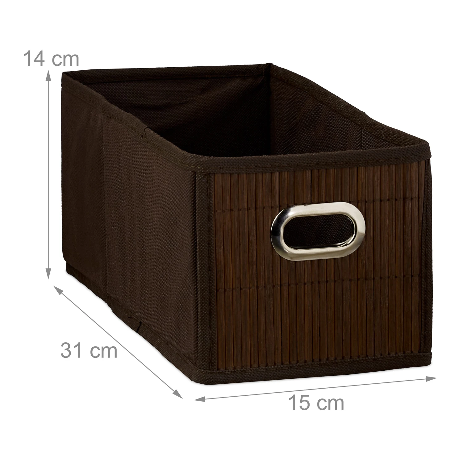 Ob für Unterwäsche im Kleiderschrank oder Accessoires in der Garderobe, im Regalkorb sind Deine Utensilien ordentlich verstaut. Dank natürlichem Bambus-Dekor ist die Aufbewahrungsbox auch im Badezimmer gut aufgehoben. Hier dient sie zur Aufbewahrung von Badutensilien oder als Handtuchkorb. Platziere den schmalen Bambuskorb im Schrank oder Regal, wo er mit dem Eingriff einfach herausgezogen werden kann. Bei Nichtgebrauch ist das Badkörbchen im Nu zusammengefaltet verstaubar.