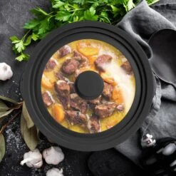Besonders in kleinen Küchen ist oft wenig Platz für Topfdeckel. Dieser praktische Universaldeckel ist die Lösung! Der Pfannendeckel verfügt über einen abgestuften Rand aus Silikon, der auf alle Töpfe und Pfannen mit einem Durchmesser von 20 bis 24 cm passt und zudem einen geringeren Wärmeverlust garantiert. Dank des Dampfauslassventils ist die Gefahr des Überkochens vermindert. Der Kochdeckel ist aus Glas gefertigt, wodurch Sie einen ständigen Einblick in die Bratpfanne oder den Kochtopf haben.