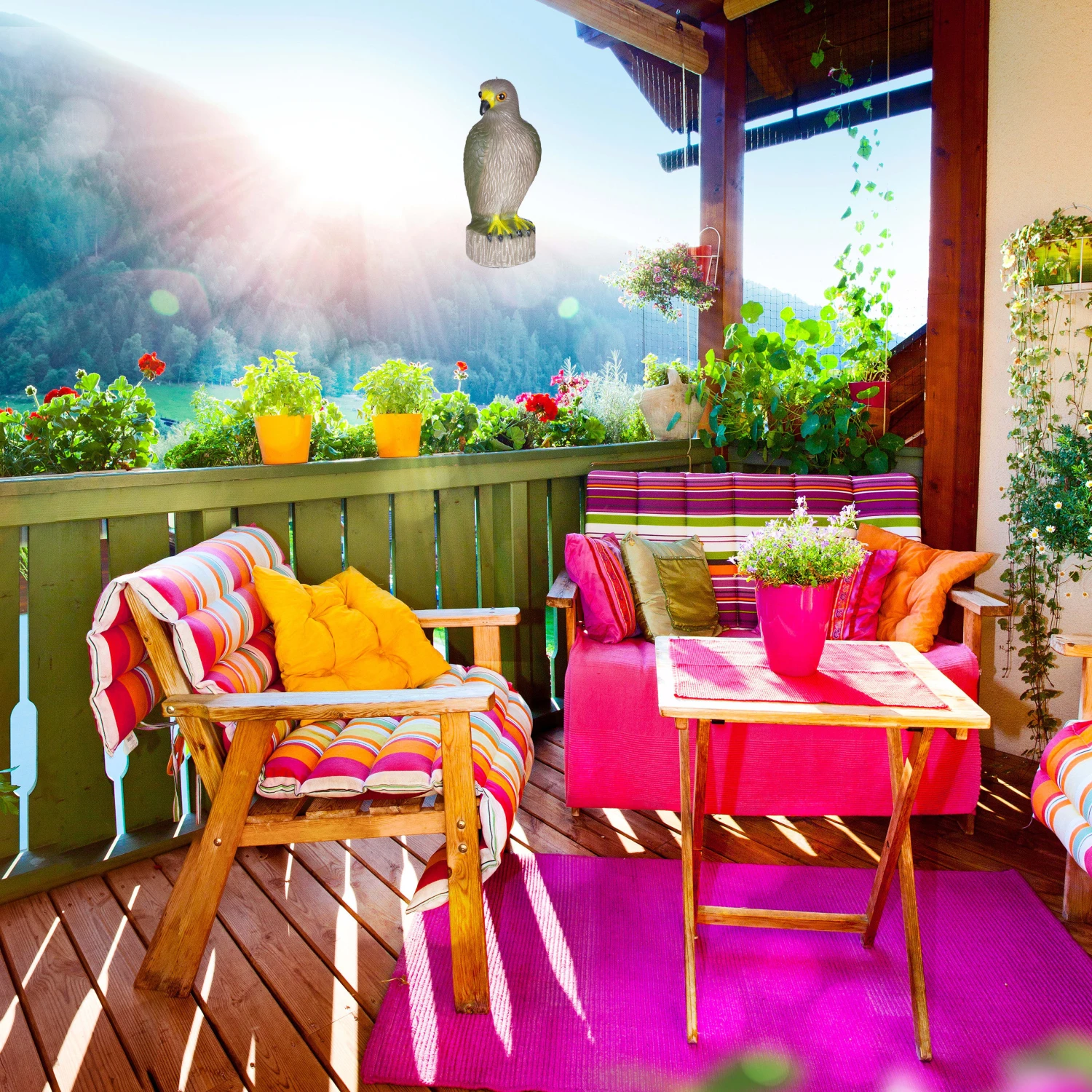 Möchten Sie auch lästige Tauben und kleine Nager loswerden, die sich an Ihrem Gemüsegarten vergehen oder den Balkon mit Unrat verschmutzen? Der Adler erschreckt unerwünschte Tiere durch sein realistisches Äußeres. Auf andere Tiere wirkt es, als säße dort ein echter Greifvogel. Für einen stabilen Stand befüllen Sie den Taubenschreck über die Öffnung am Boden mit Sand oder Kieselsteinen. Auch als hübsche Dekofigur im Garten, auf dem Balkon oder der Terrasse ist die Vogelattrappe geeignet.