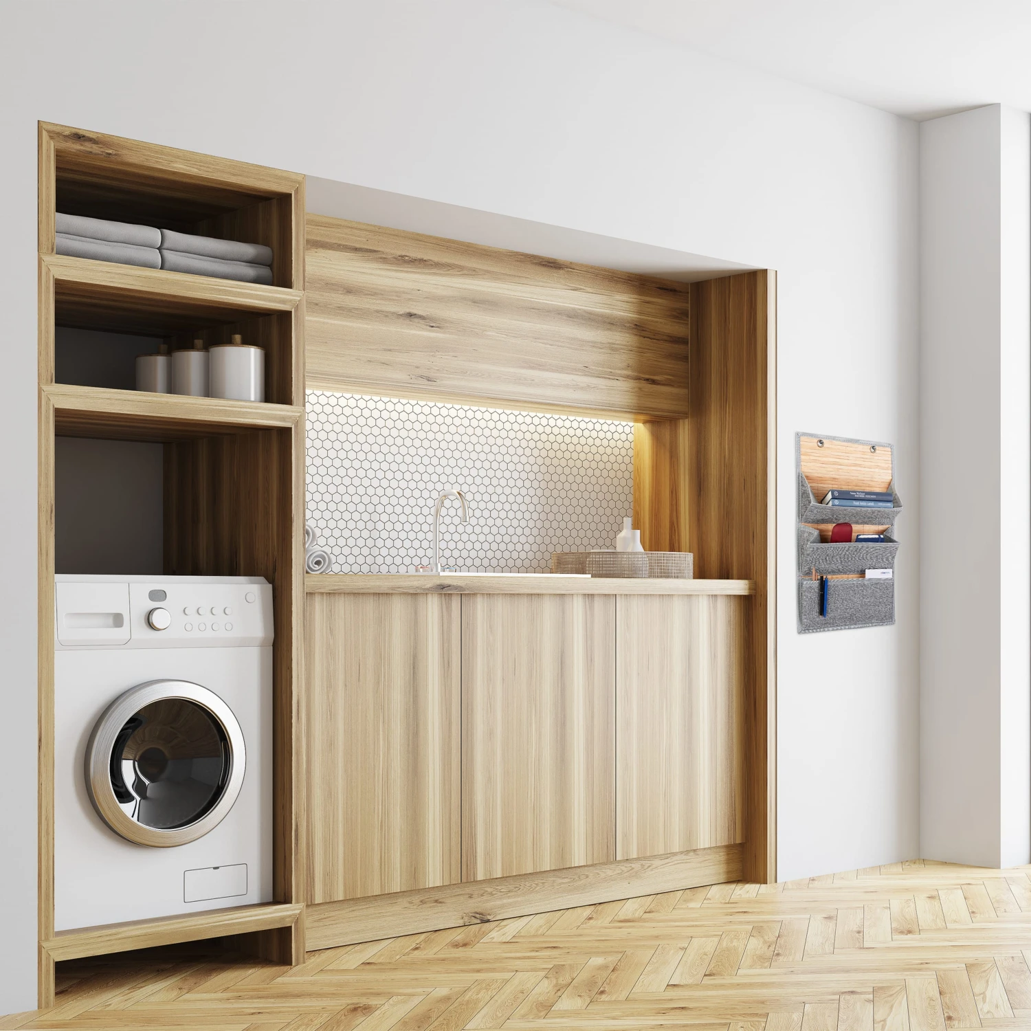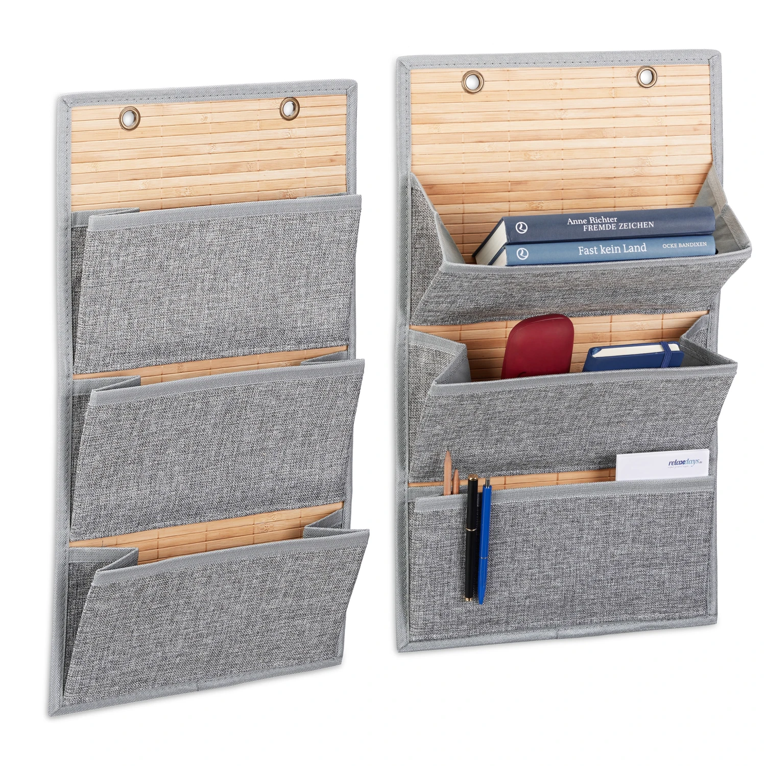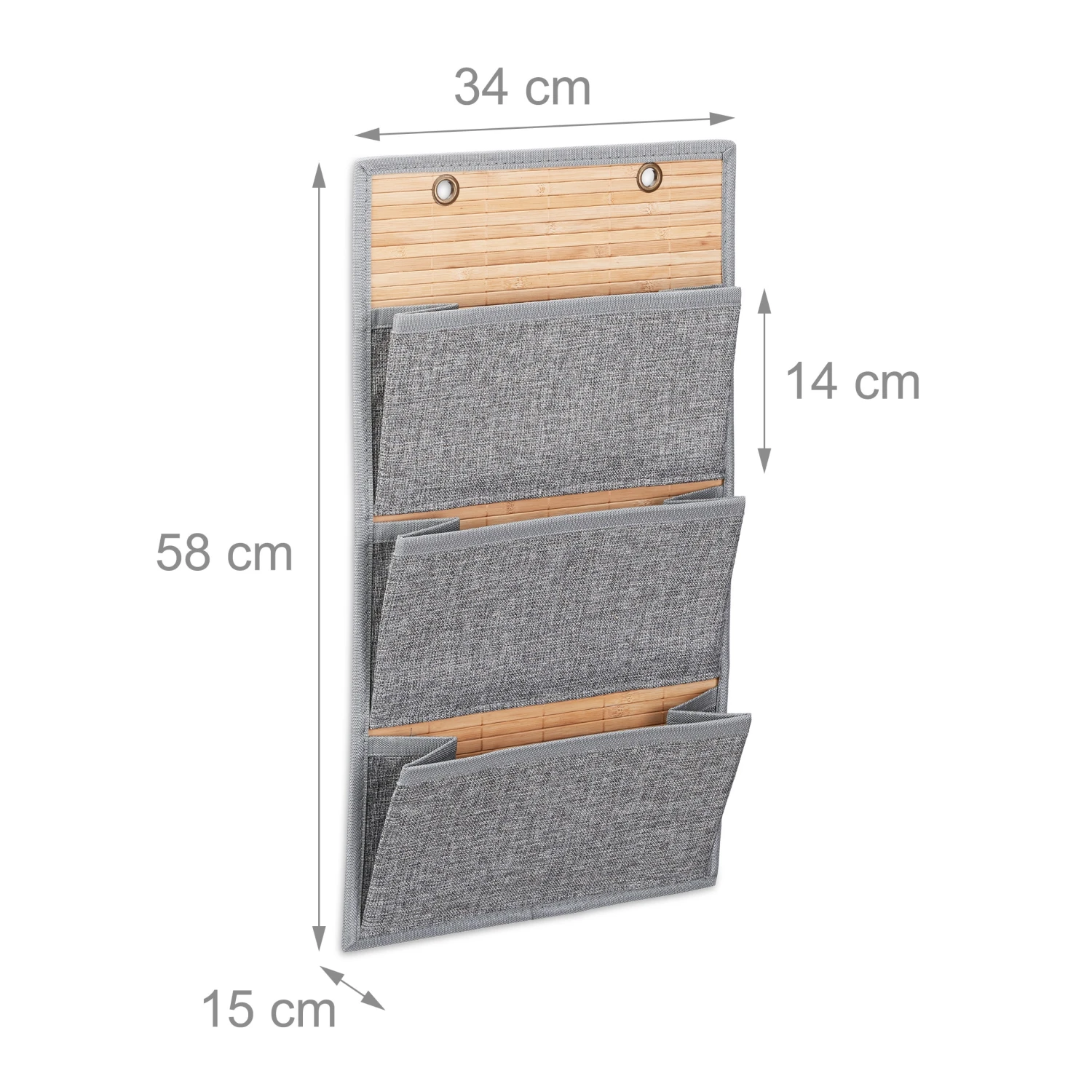Ein überfüllter Arbeitsplatz oder eine unübersichtliche Garderobe gehören mit dem Wandorganizer aus Bambus der Vergangenheit an. Die praktische Hängeaufbewahrung für Wand und Tür bietet Platz für Zeitschriften, Post, Brieftaschen, Sonnenbrillen und Mützen. Dabei nimmt der Organizer mit 34 cm Breite selbst wenig Raum ein. Nutzen Sie den Türorganizer im Arbeitszimmer für Unterlagen oder im Flur für Accessoires. Die Wandaufhängung aus Bambus und Polyesterstoff ist auch für das Badezimmer geeignet.
