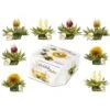 Der ErblühTee bietet dem Genießenden ein außergewöhnliches Erlebnis: Im Innern der Kugel befindet sich eine kunstvoll eingebundene exotische Blüte. Ihr Geheimnis entfaltet die Kugel aber erst, wenn sie in ein Gefäß mit kochend heißem Wasser gegeben wird. Sie beginnt sich langsam zu öffnen und bringt am Ende der Aufgussinszenierung die eingebettete Blüte hervor, die formenreich und farbenprächtig aus ihr emporsteigt.