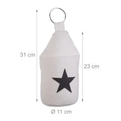 Der runde Türstopper aus Stoff überzeugt durch sein modernes Design mit einem dekorativen Stern auf der Vorderseite. Der Türpuffer muss nicht am Boden oder der Wand befestigt werden und kann durch den praktischen Metallring einfach angehoben und jederzeit flexibel neu platziert werden.
