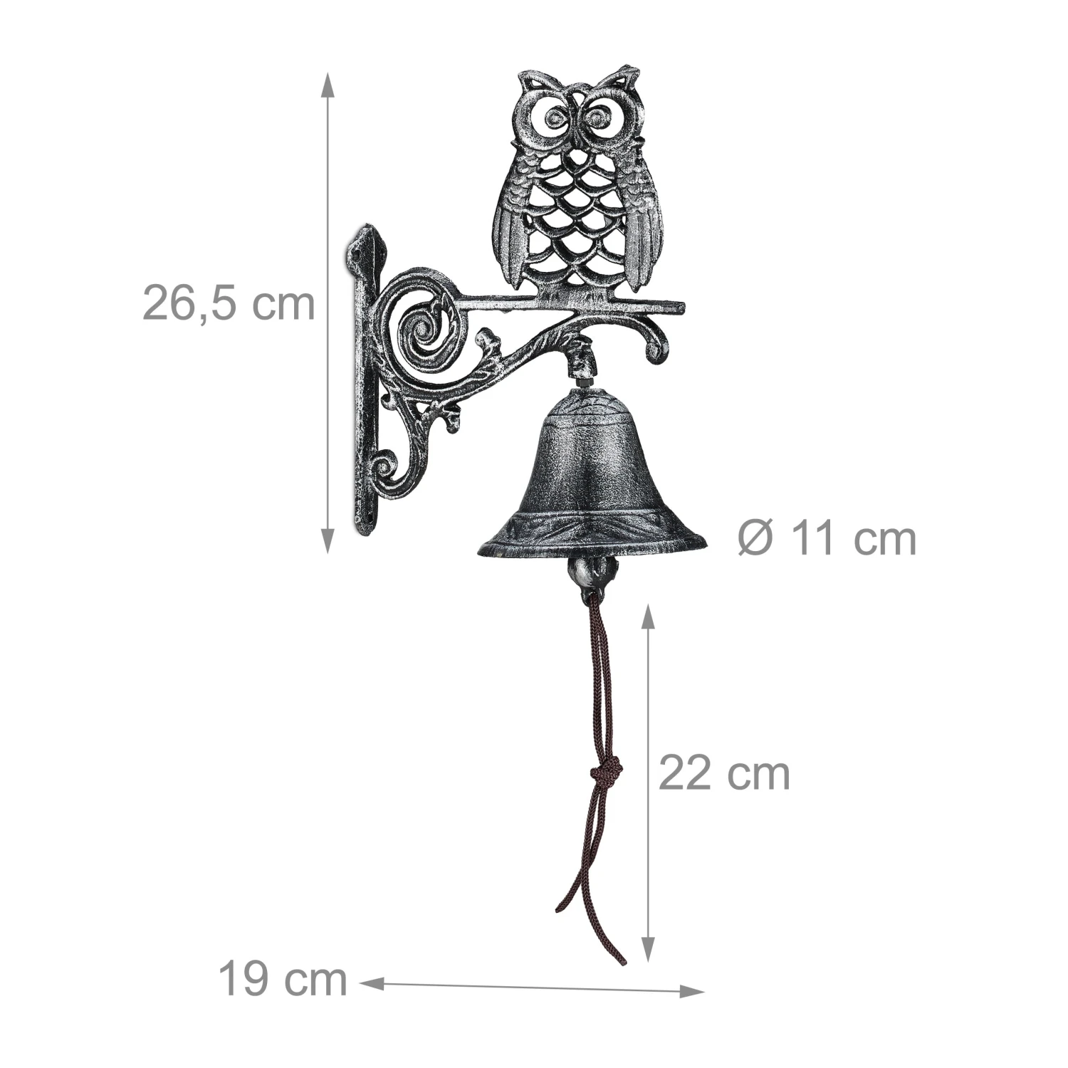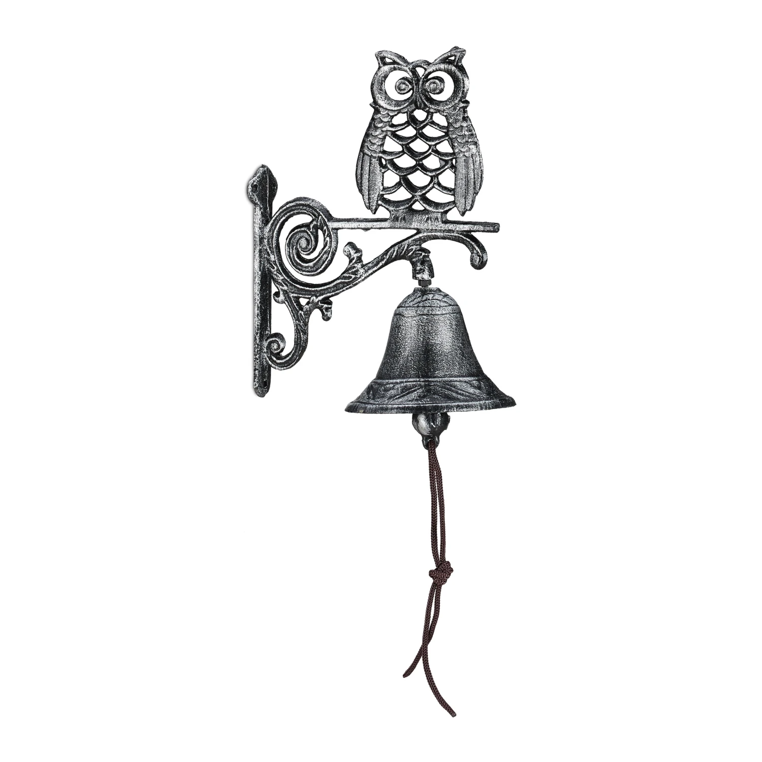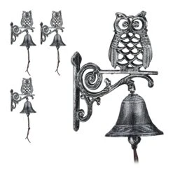 Ihr Eingangsbereich kann ein wenig dekorativen Charme vertragen? Dann ist die Türglocke aus Gusseisen eine klare Empfehlung. Die Glocke ist fest mit der Sitzstange verbunden, auf der es sich eine Eule gemütlich gemacht hat. Die grob strukturierte Oberfläche erweckt den Eindruck, als habe die Wandglocke schon so manches Jahrzehnt auf dem Buckel und präsentiert sich so im antiken Stil. Die nostalgische Variante zur schrillen Türklingel ist auch perfekt als Deko im Garten geeignet.