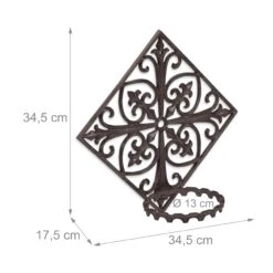 Mit dieser gusseisernen Blumentopfhalterung im antiken Stil bringen Sie Ihre Pflanzen am Haus besonders schön zur Geltung. Die floralen, geschwungenen Formen des Wandhalters spielen gekonnt mit seinem rustikalen Charme zusammen und lassen den Pflanzenhalter zu einem Blickfang an jeder Hauswand werden. Über das vorgebohrte Loch lässt sich die Blumenhalterung spielend leicht aufhängen und bildet ein harmonisches Zusammenspiel mit schick bepflanzten Blumentöpfen.