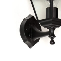 Fassung: E27 60Watt | Farbe: Schwarz | Material: Aluminium, Echtglas | Spannung: 230V | Spritzschutzklasse:IP44 | Rustikale Außenwandleuchte im Stil einer klassischen Laterne | Mit dieser eleganten Wandlampe setzen Sie Ihre Fassade, den Eingangsbereich, die Terrasse oder den Hof ins richtige Licht! | das Schwarz setzt einen klassischen Akzente | bestens geeignet für LED Leuchtmittel, Energiesparlampen oder herkömmliche Glühbirnen bis zu 60 Watt mit E27 Fassung (nicht inkl.) | IP44, Echtglas und Aluminium: witterungsbeständig, wetterfest und vor Korrosion geschützt | Maße Gesamt: Breite: 150mm, Höhe: 350mm, Tiefe: 200mm | Maße Wandhalterung: Durchmesser: 110mm, Bohrlochabstand: 75mm