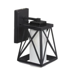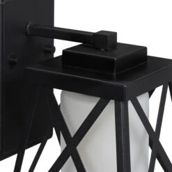 Diese schwarze Outdoor-Wandleuchte passt an jede Hauswand und sorgt für eine dekorative Beleuchtung Deines Außenbereichs. Ob als Haustürlampe am Eingang oder für ein stimmungsvolles Licht auf der Terrasse – die Retro Wandlaterne ist überall ein Hingucker. Die Außenwandlampe besteht aus robustem Metall und Glas und kann bei Bedarf auch im Innenbereich genutzt werden. Die Montage an der Fassade gelingt dank des beiliegenden Materials im Handumdrehen.