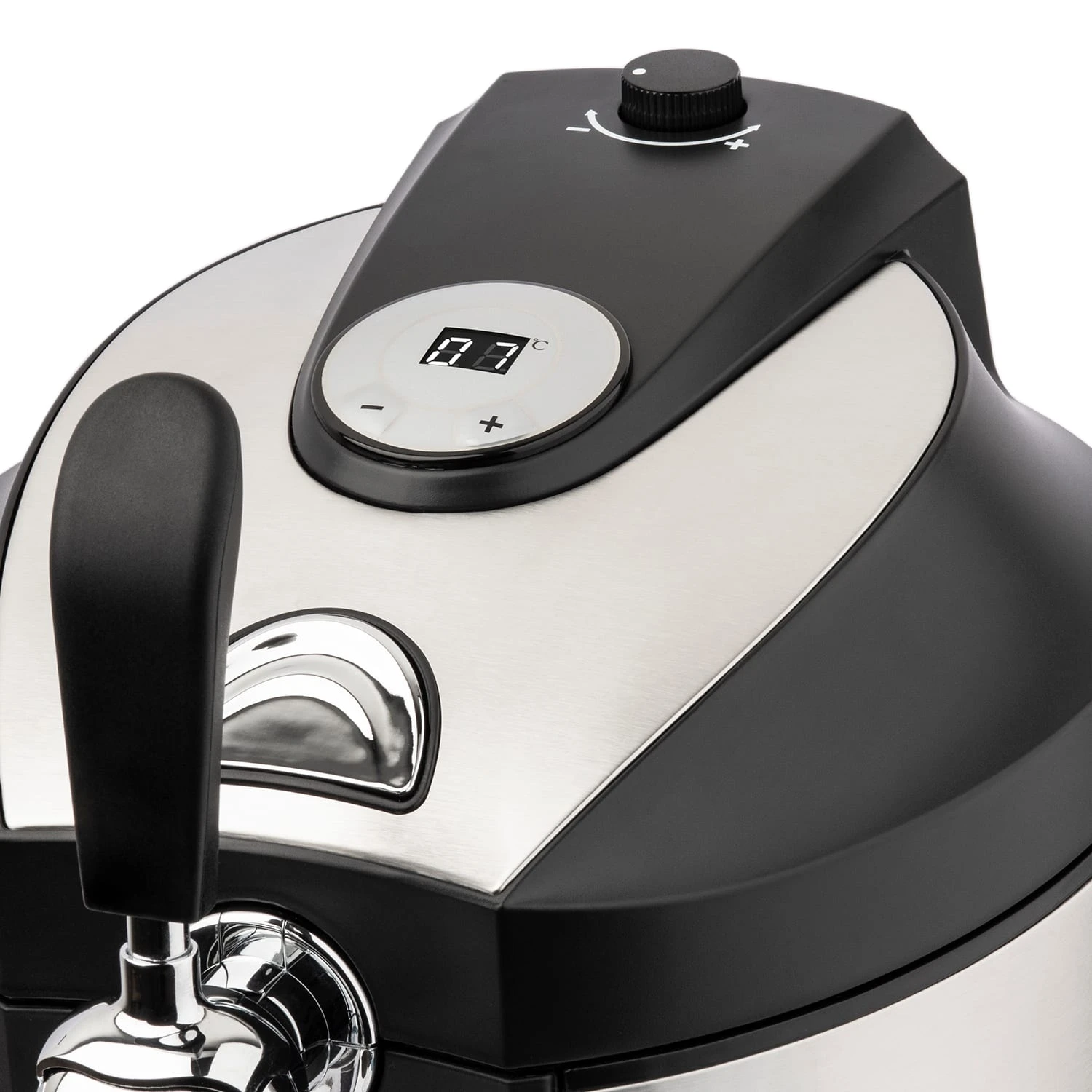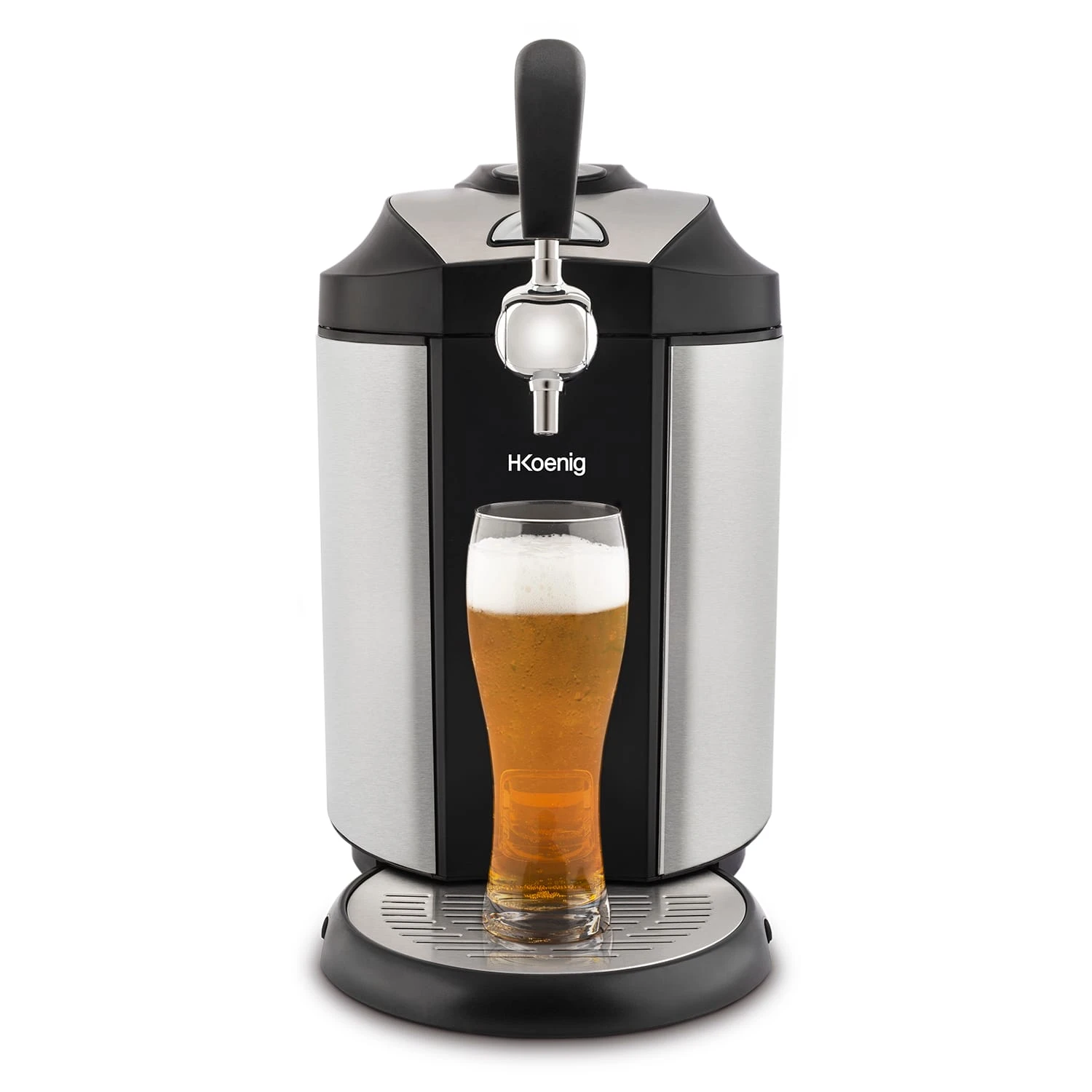 Entdecken Sie den Genuss von Fassbier zu Hause mit der BW1890 Fassbierzapfanlage. Dieses Gerät ist mit allen 5-Liter-Universalfässern, einschließlich Heineken®, kompatibel und garantiert eine Bierhaltbarkeit von bis zu 30 Tagen. Die mit einem abnehmbaren Griff und einem Gehäuse aus Edelstahl ausgestattete Zapfanlage funktioniert mit 5-Liter-Fässern. Das integrierte Kühlsystem ermöglicht es Ihnen, Ihr Bier bei idealer Temperatur zu genießen. Stellen Sie die Temperatur je nach Bedarf ein, sei es 6°C für aromatisiertes Bier oder 11°C für Stout. Für eine bessere Verteilung fängt der Zapfhahn dank seiner herausnehmbaren Schale den überschüssigen Schaum auf. Mit einer einfachen Geste können Sie mit dem Bierzapfhahn BW1890 den einzigartigen Geschmack eines Brauereibiers wiederentdecken.