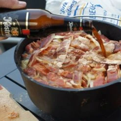 Das Garen mit dem Dutch Oven ist eine faszinierende Erfahrung. Der würzige Geschmack der im Dutch Oven zubereiteten Speisen erfreut sich weltweit großer Beliebtheit. Camp Chef Dutch Ovens eignen sich sowohl für Mitglieder der eingeschworenen Dutch Oven Community wie auch für alle, die zum ersten Mal diese Outdoor-Gartechnik auf ihrer Terrasse ausprobieren wollen. Reinigung & Pflege: Dank der vorbehandelten Oberfläche des Gusseisens kannst Du sofort mit dem Kochen loslegen. Es ist kein Einbrennen vor dem ersten Kochen notwendig. Zur Reinigung der Pfanne verwendest Du bitte nur warmes Wasser. Keinesfalls darf das Gussprodukt mit Spülmittel oder anderen chemischen Reinigern gesäubert werden, weil dies die Patina zerstören würde, die den Topf vor Korrosion schützt. Nach einer gründlichen Reinigung empfehlen wir Dir den Einbrennvorgang zu wiederholen. Es gibt dafür 2 erprobte Methoden: Verwende eine Pflegepaste, reibe damit den ganzen Guss ein und erhitze deine Pfanne/Topf/Form einmal richtig. Die Pflegepaste verläuft und dringt tief in den Eisenguss ein und schützt diesen dann perfekt.