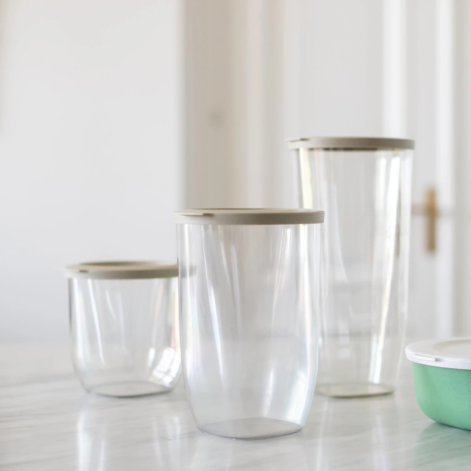 Von Mehl, Zucker und Nudeln über Cornflakes und Nüsse, CONNECT DRY STORAGE hat für alles Platz, was luftdicht und aromaschonend aufbewahrt werden soll. Die Dosen kommen in hochtransparentem Material, so sieht man gleich, was drinnen ist und muss nicht lange suchen. Die farbigen Deckel helfen zusätzlich bei der Unterscheidung. CONNECT DRY STORAGE ist in drei Größen erhältlich, alle Dosen sind stapelbar und miteinander kombinierbar. •luftdicht•mit Sichtfenster•stapelbar •Füllmenge: 1000 ml•3 kombinierbare Größen•100% CO2-neutral KOZIOL THERMOPLASTIC