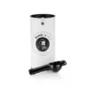 Das Geschirr präsentiert sich in einer modernen Fahnenform mit weißer, glänzender Gasur, abgerundet durch ein kreisförmiges, schwarzes Relief.