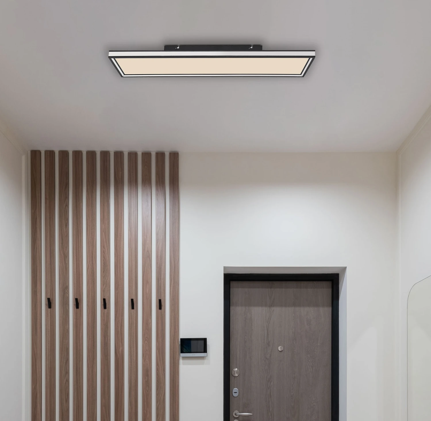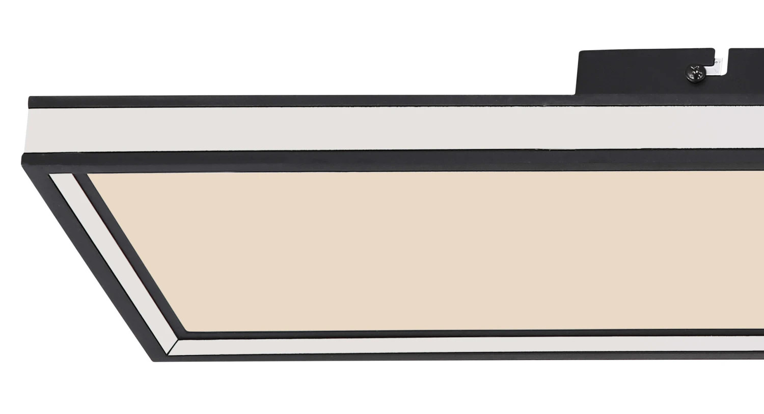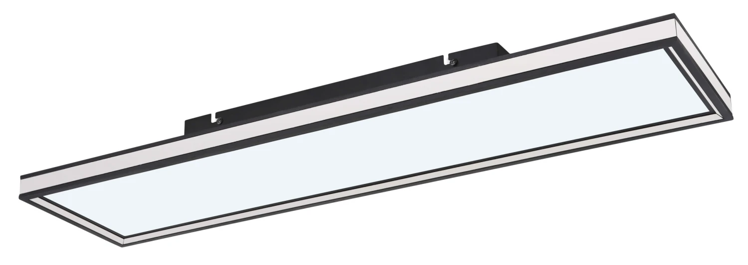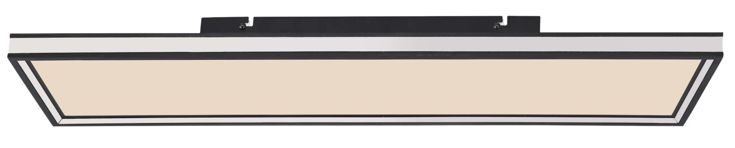 Deckenleuchte Metall schwarz matt, Spiegel, Kunststoff opal, dimmbar, mehrere Stufen über Wandschalter, Farben fixierbar, Memoryfunktion, Nachtlicht, Timer, Fernbedienung, Batterie inkludiert 2x AAA, LxBxH: 800x200x80mm, inkl. LED 24W 230V, 100-2500lm Source, 60-1500lm Output, CCT 2700-6500K