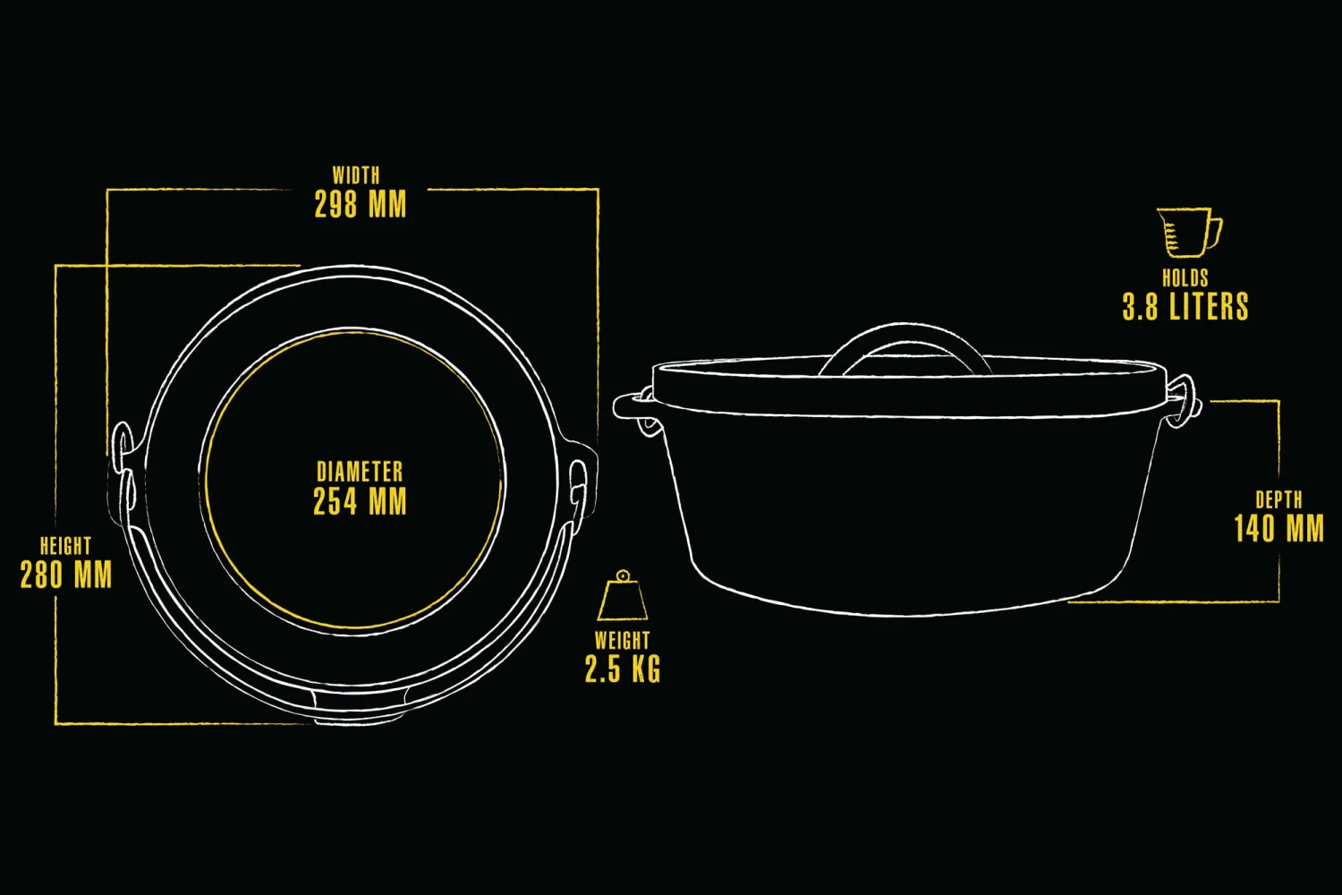 Das Set ist aus massivem Gusseisen gefertigt und so ein idealer Wärmeleiter und Wärmespeicher für Deine Speisen. Das Material ist bereits eingebrannt und so kannst Du es direkt einsetzen.