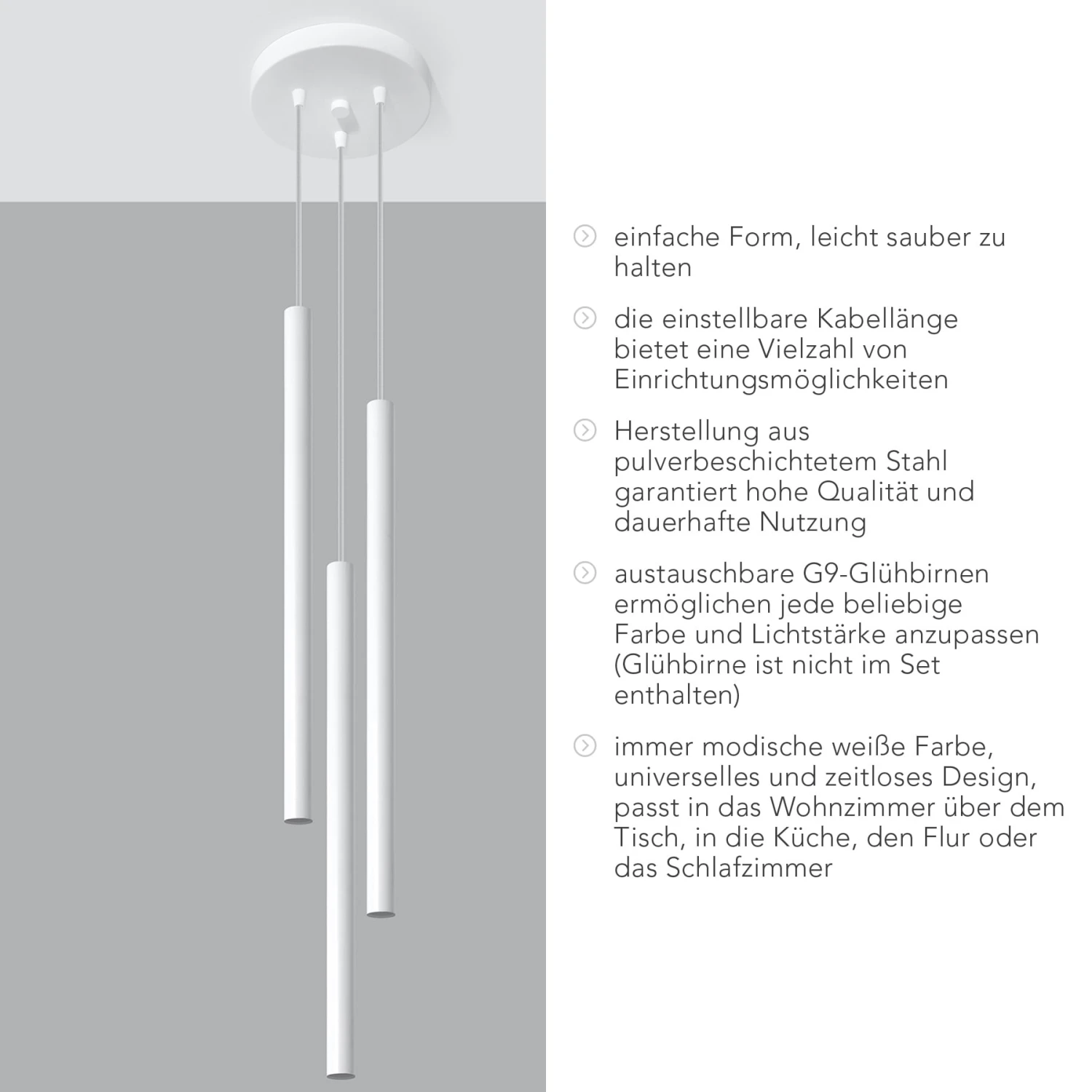 Eine Hängelampe passt perfekt zu modernen Trends im Innendesign. Sie verbindet Klassik und Moderne, ähnelt einer traditionellen Kerzenform, spendet jedoch Licht durch eine G9-Glühbirne. Sie wird perfekt für einen kleinen Abstand über dem Tisch sein.
