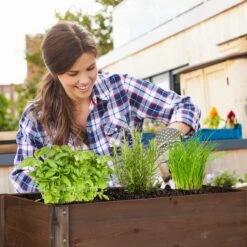 Sie lieben es, leckeres Gemüse oder aromatische Kräuter anzubauen, haben aber keinen eigenen Garten? Mit diesem Hochbeet aus Holz können Sie sich auch daheim auf Balkon und Terrasse dem Hobbygärtnern widmen. Dabei vereint der Stadtgarten viele Vorteile für Sie und Ihre Pflanzen: Aufgrund der Erhöhung müssen Sie nicht mehr im Hocken gärtnern, sondern können sich bequem vor das Beet setzen oder stellen. Gleichzeitig werden Ihre Blumen, Kräuter oder Gemüsepflanzen vor Schädlingen und Unkraut geschützt, die kaum den Weg in diese höheren Gefilde finden. Blumenerde und weiteres Pflanzzubehör können Sie auf der Ablage des Frühbeets jederzeit griffbereit lagern.