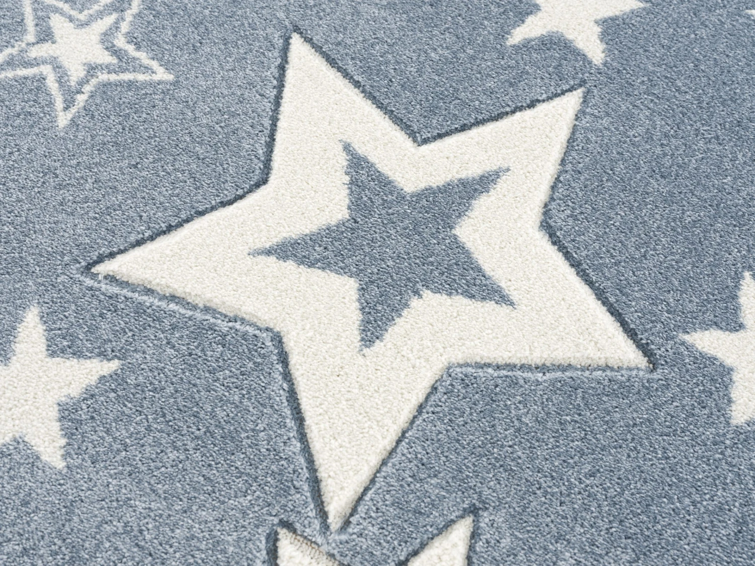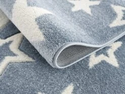 Mit dem schönen Kinderteppich in der Größe 120x180cm zieht ein tolles Wohnaccessoire in das Kinderzimmer. Der blaue Teppich passt hervorragend zur Einrichtung und wertet das Ambiente auf. Im Mittelpunkt stehen aber die vielen verschiedenen Sterne, die sich in unterschiedlichen Größen und Designs zeigen. Sie machen den Charme des Kinderzimmerteppichs aus und sind ein toller Hingucker. Aufgrund der hochwertigen Verarbeitung kann sich der Teppich auch hinsichtlich seiner strapazierfähigen und pflegeleichten Merkmale sehen lassen.