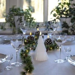 LED Kerze Tannenbaum – Echtwachs – warmweiße 3D Flamme – H: 18cm – Timer – weiß