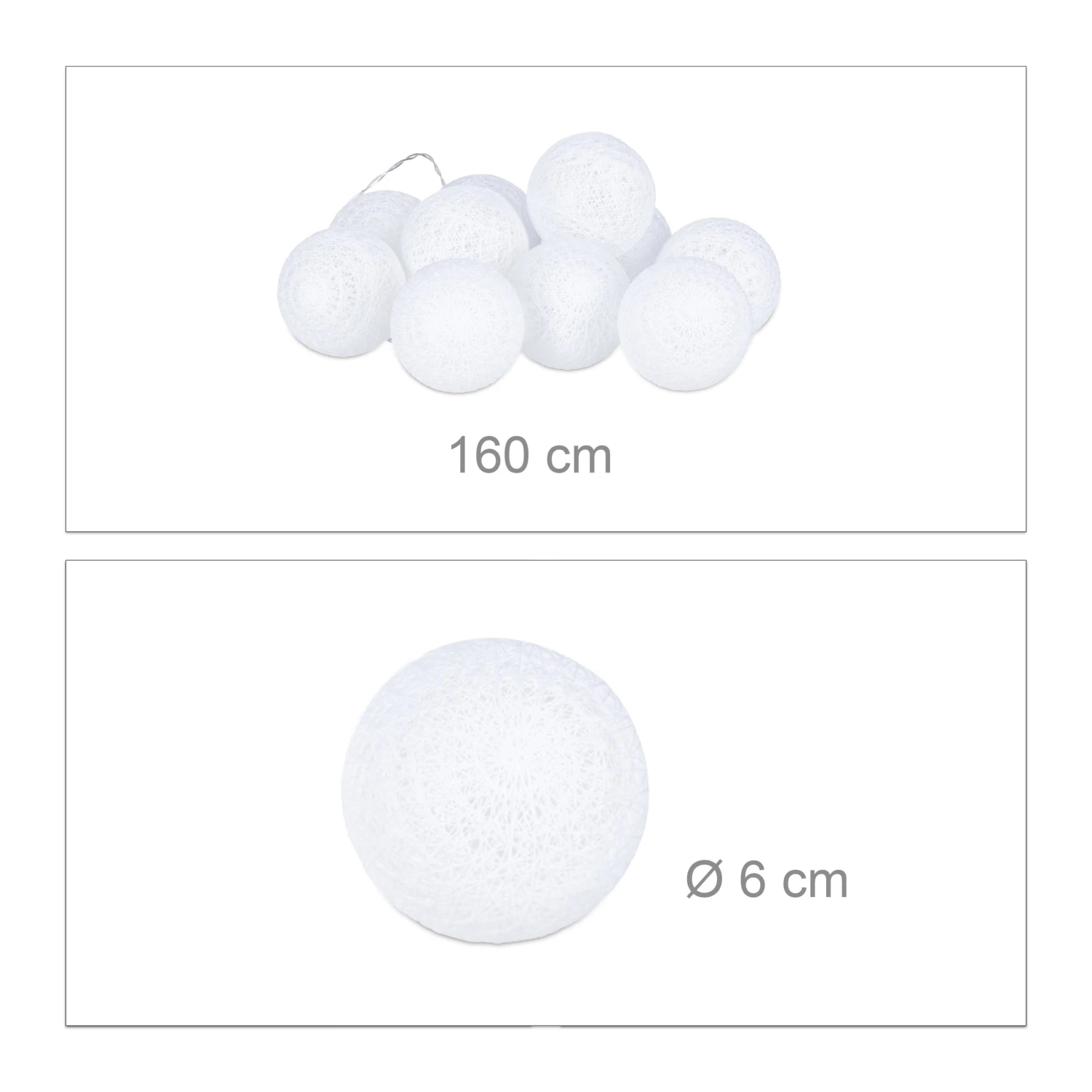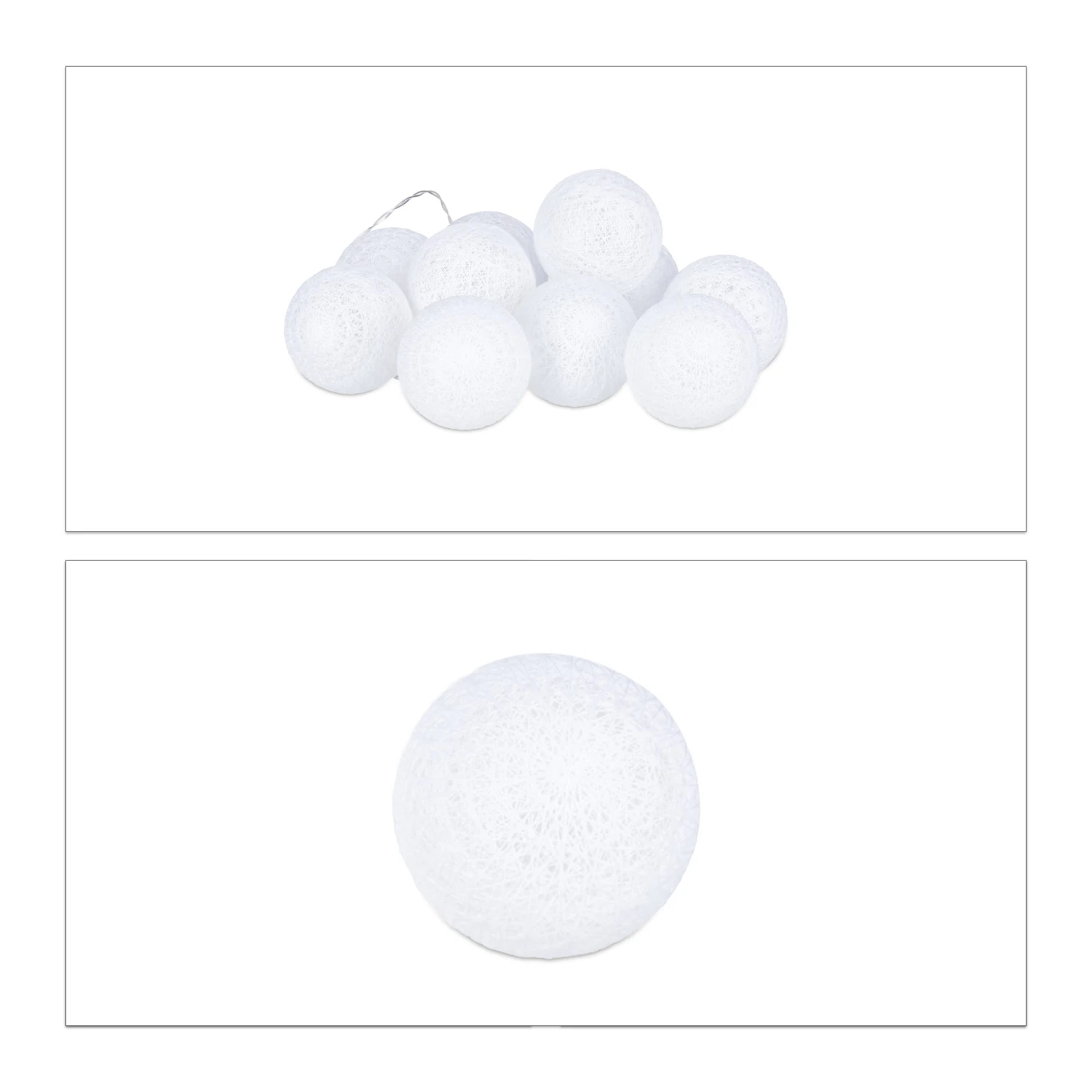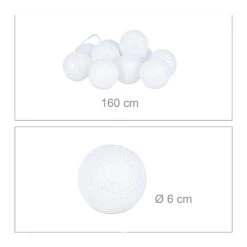 Die passende Beleuchtung trägt sehr dazu bei, dass die nächste Party, die Hochzeit oder die Weihnachtsfeier zu unvergesslichen Ereignissen werden. Die LED-Lichterkette mit den 10 Kugeln lässt Ihnen viele Möglichkeiten des Anordnens, da sie von keiner externen Stromquelle abhängig ist. Betrieben wird die Kugelkette mit Batterien (nicht enthalten). Das warmweiße LED-Licht harmoniert erstklassig mit den feinen Baumwollfäden auf den Leuchtkugeln. Wenn Sie ein stimmungsvolles Ambiente zaubern wollen, ist diese Partylichterkette eine hervorragende Wahl.