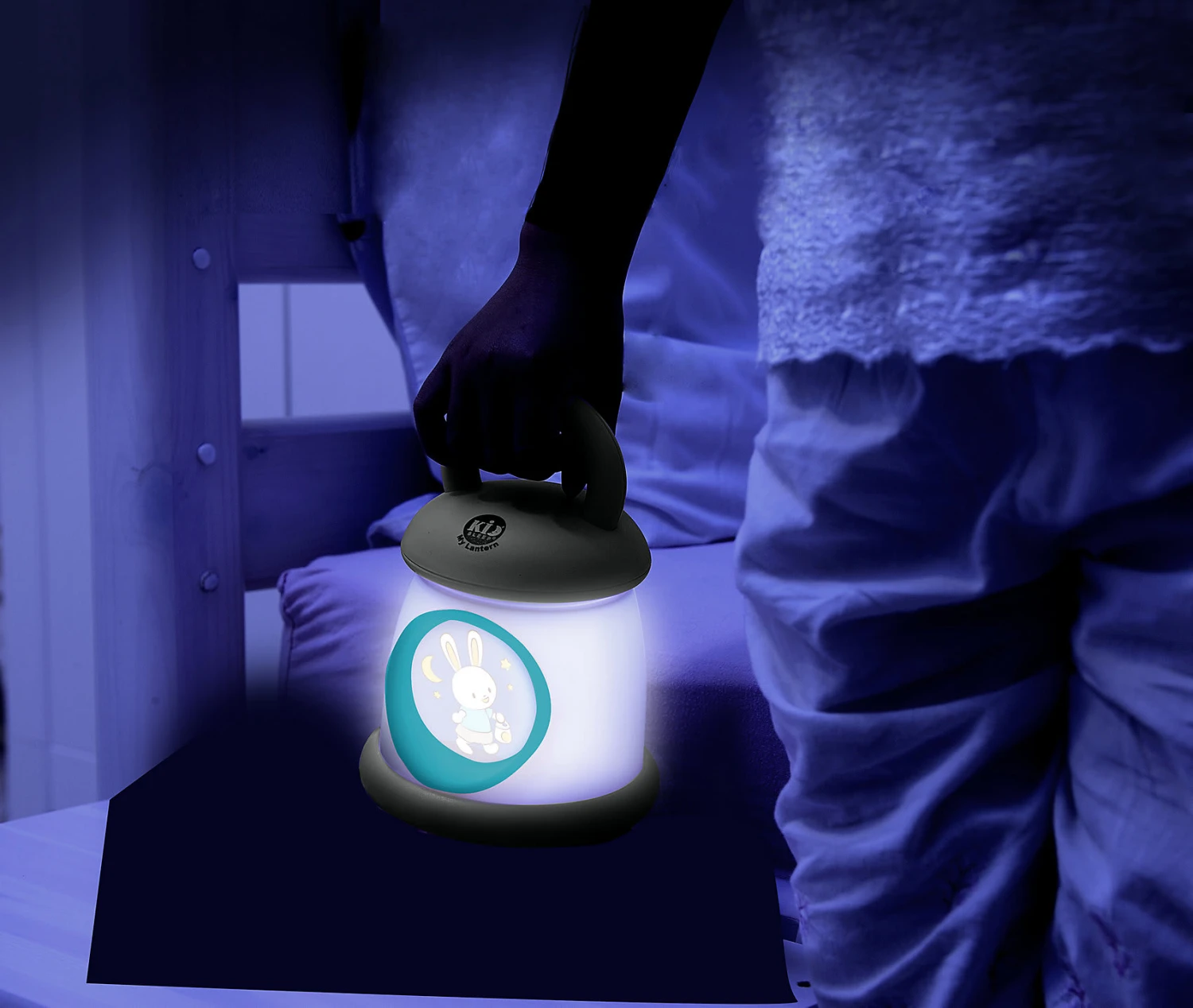 Das süße „My Lantern“ Nachtlicht von KID Sleep eignet sich klasse als Einschlafhilfe für Kinder! Die schöne Laterne ist eine sanfte Lichtquelle mit Farbwechseleffekt, die zudem Töne aus dem Mutterleib, zwei Schlaflieder oder ein beruhigendes Wasserplätschern abspielt. Muss das Kind nachts auf die Toilette, kann es einfach die Laterne anheben und schon geht das Licht an.