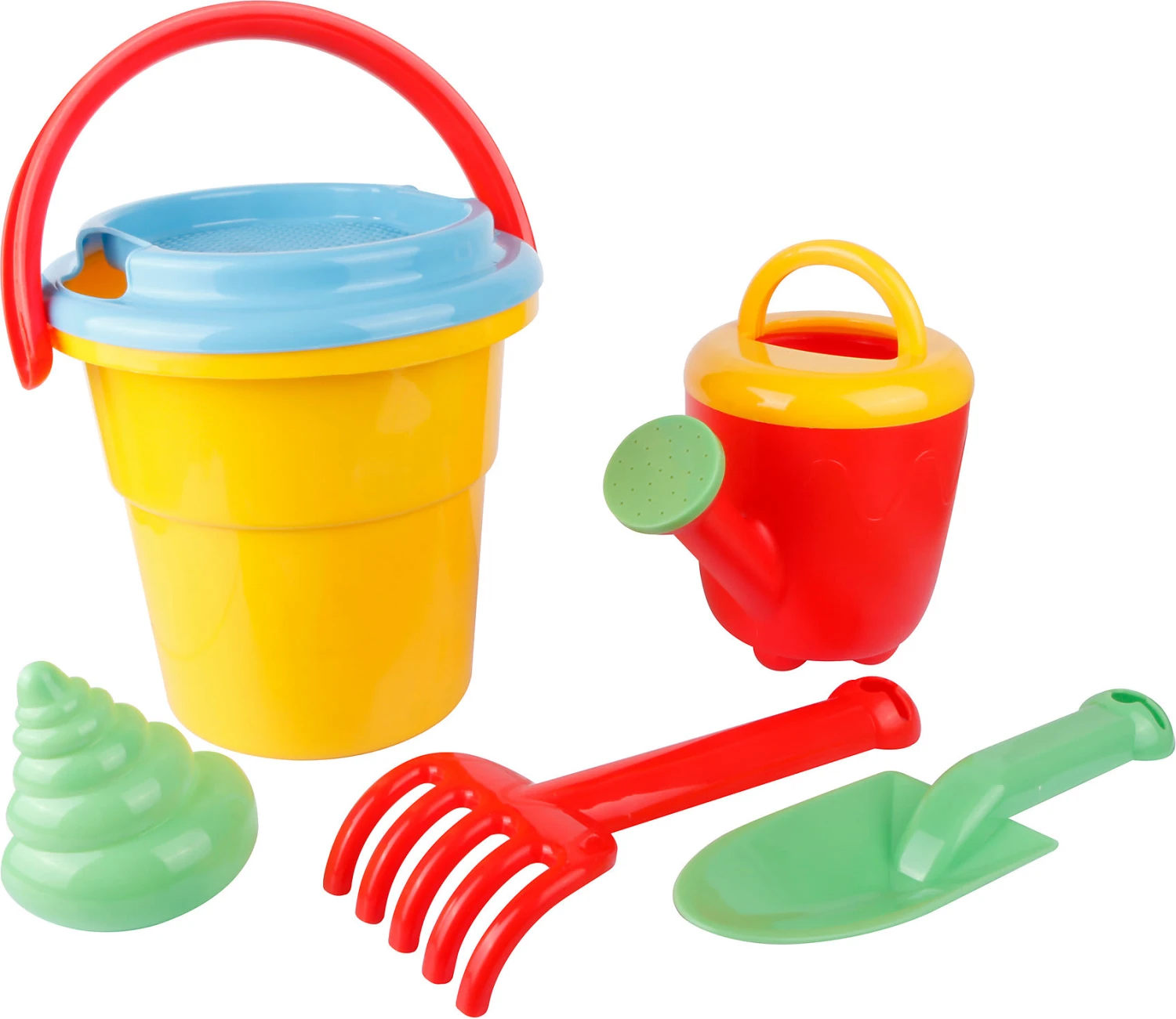 – mit Eimer, Gießkanne, Schaufel, Rechen und Förmchen