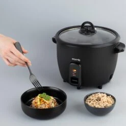 Erhalten Sie perfekten Reis mit dem Reiskocher ORYZA8 von H.Koenig! Mit einer Leistung von 700 Watt und einem Fassungsvermögen von 1,8 Litern können Sie für bis zu 10 Gäste kochen. Sie brauchen sich nicht mehr um das Kochen zu kümmern, es geschieht automatisch und gelingt immer. Nach dem Kochen hält Ihr Kocher den Reis bei optimaler Temperatur, so dass er jederzeit genossen werden kann. Er eignet sich für alle Reissorten (Basmatireis, Thai-Reis, brauner Reis usw.). Mit dem integrierten Dämpfkorb können Sie Gemüse, Fisch und Geflügel garen und so Ihre Rezepte erweitern. Ein Messbecher und ein Löffel sind ebenfalls im Lieferumfang enthalten. Die abnehmbare, antihaftbeschichtete Schüssel ist leicht zu reinigen und spülmaschinenfest.
