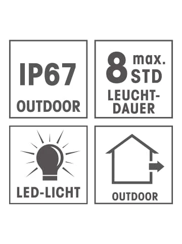 – Lieferumfang: Solar-Dekostein, Erdspieß, Fernbedienung inkl. Batterie