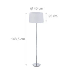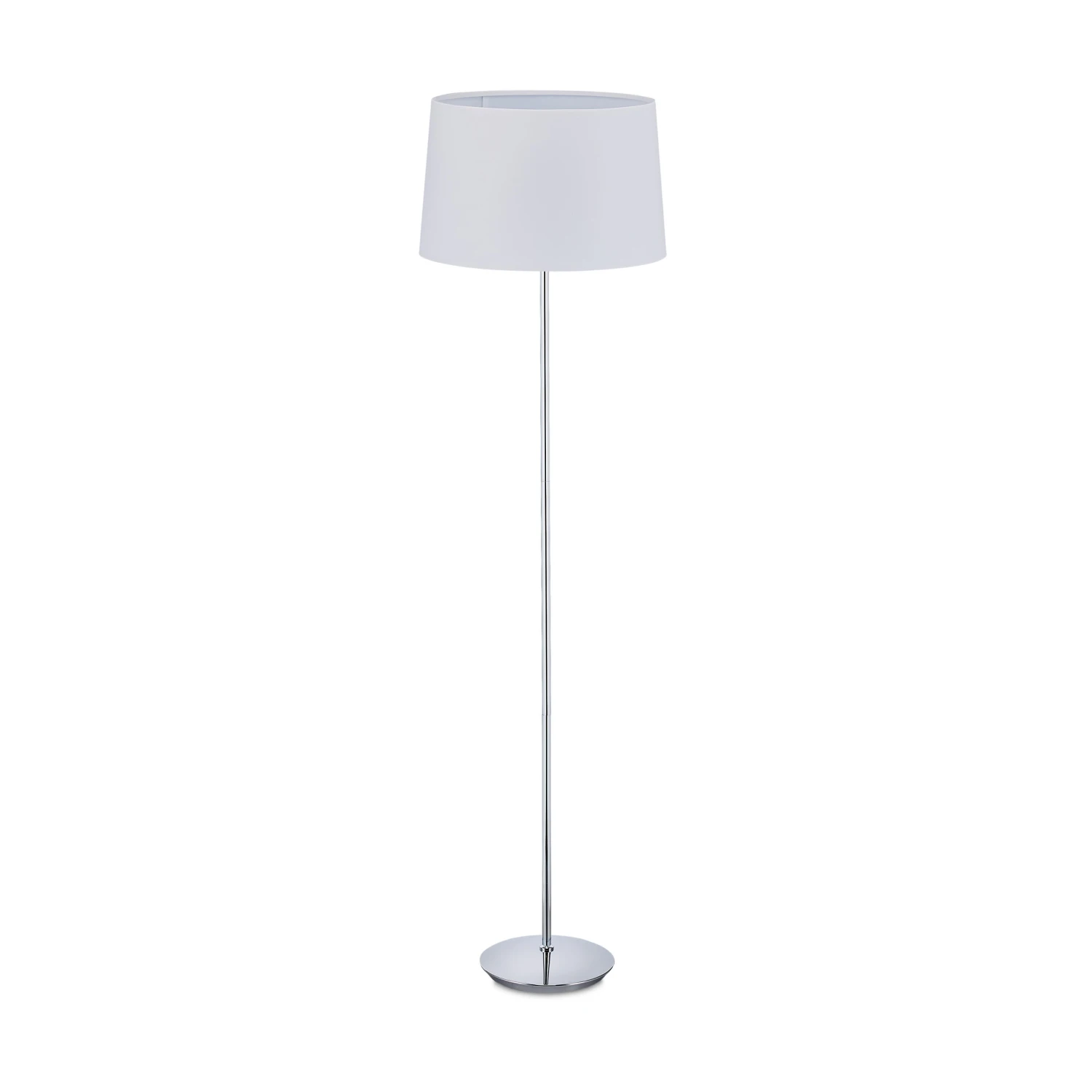 Die Standlampe mit Schirm ist ideal, um das Wohnzimmer stimmungsvoll zu beleuchten oder als Deko Stehleuchte gemütliches Licht im Schlafzimmer zu spenden. Der Lampenschirm aus Stoff sorgt für eine indirekte, angenehme Beleuchtung und bietet einen kontrastreichen Akzent zum glänzenden Chrom-Fuß. Die Stehleuchte fügt sich mit ihrem klassischen Design bestens in Ihre Stube ein und ist dank des langen Kabels mit einem praktischen Fußschalter leicht ein- und auszuschalten.