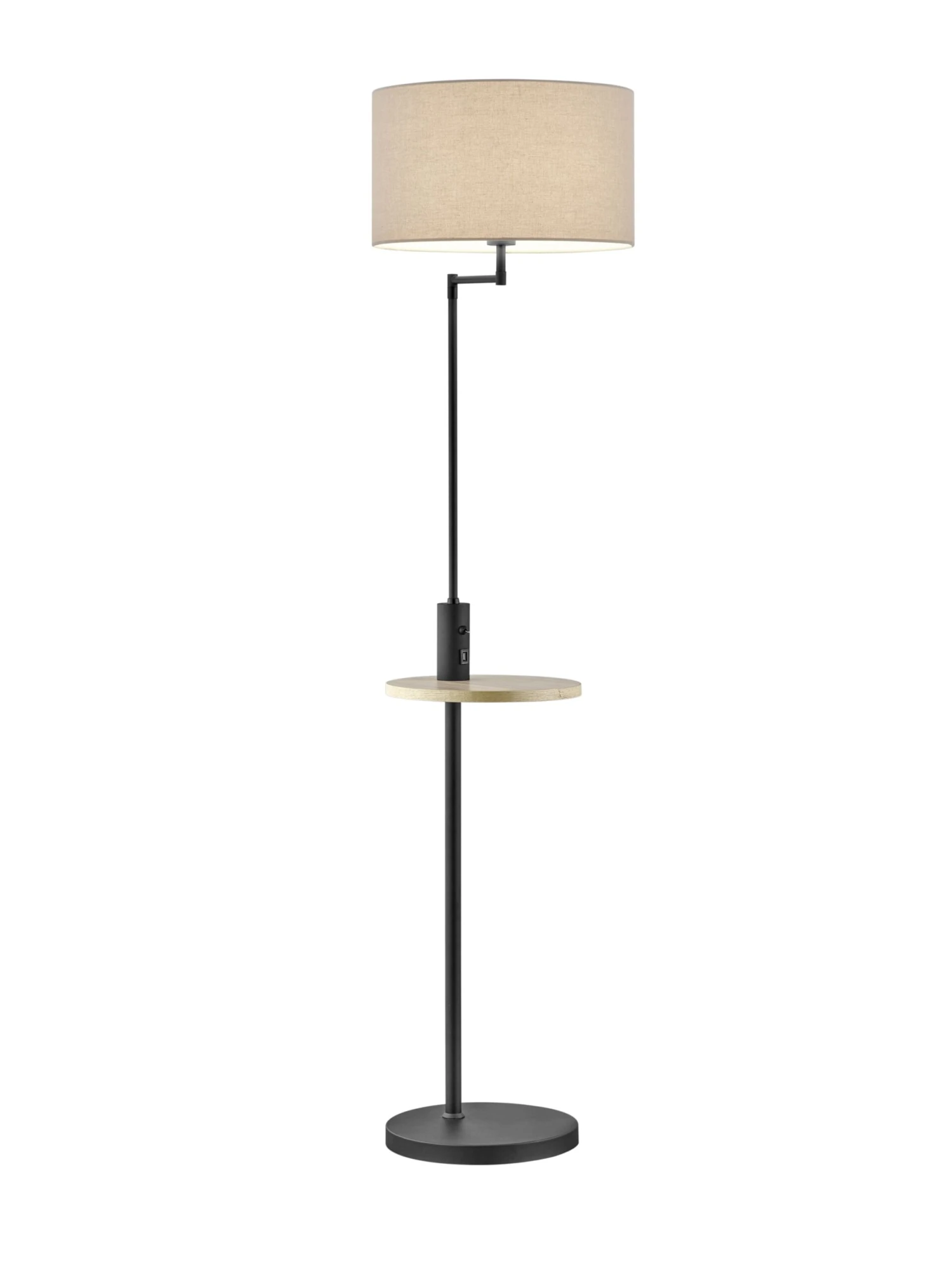 Die moderne Stehleuchte CLAAS lässt sich perfekt im Flur oder neben dem Sofa platzieren und schafft Lichtakzente, die Ihrem Wohnraum ein gemütliches Ambiente verleihen. Zusätzlich verfügt die Stehleuchte über einen kleinen Holztisch und einen USB Anschluss mit Ladefunktion, so bietet es sich beispielsweise optimal an, das Handy neben dem Sofa abzulegen und gleichzeitig aufzuladen. Die praktische Leuchte hat eine Höhe von 160 cm und eine Auslage von 40 cm.