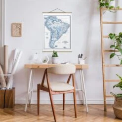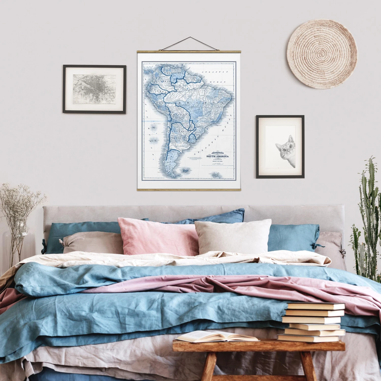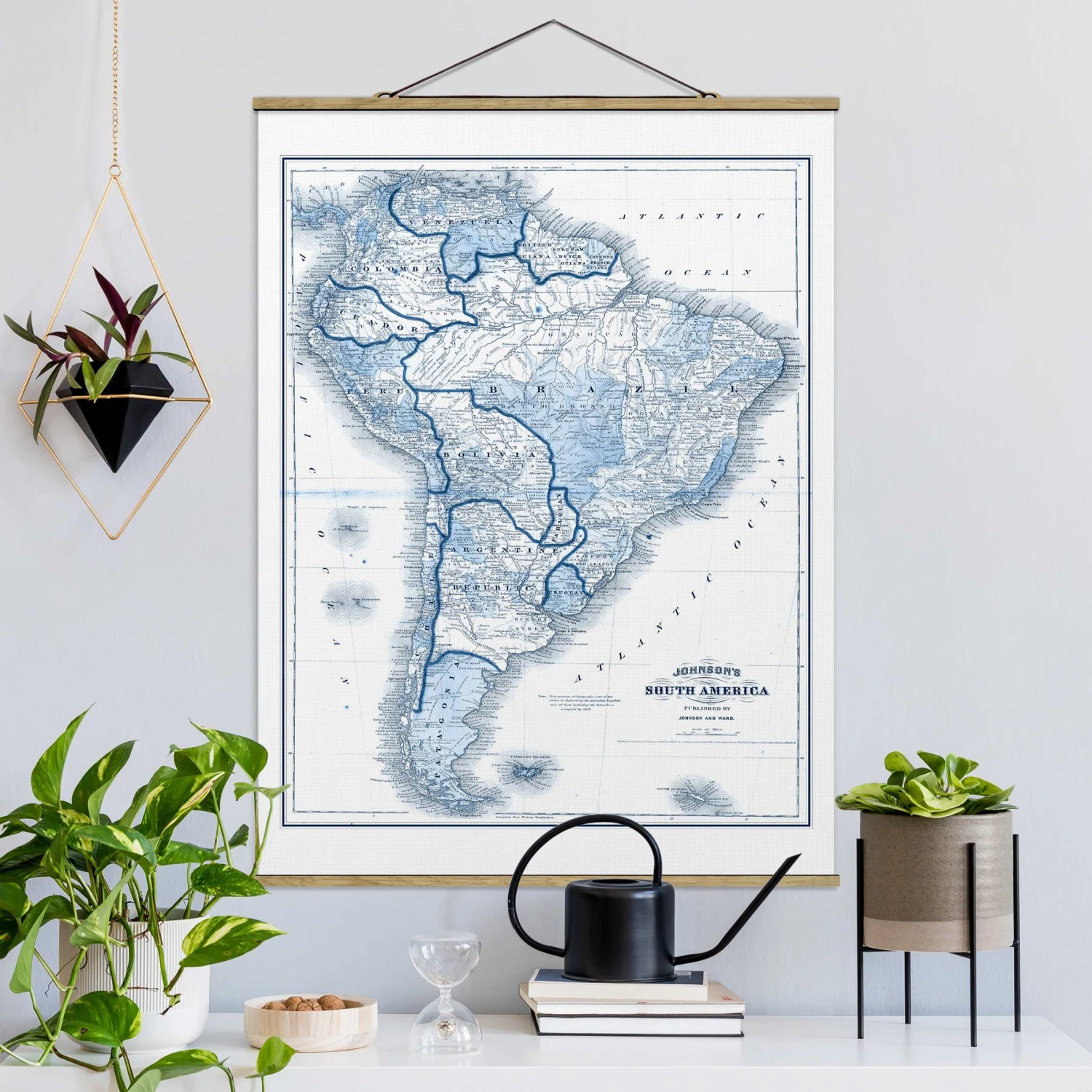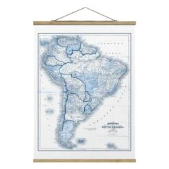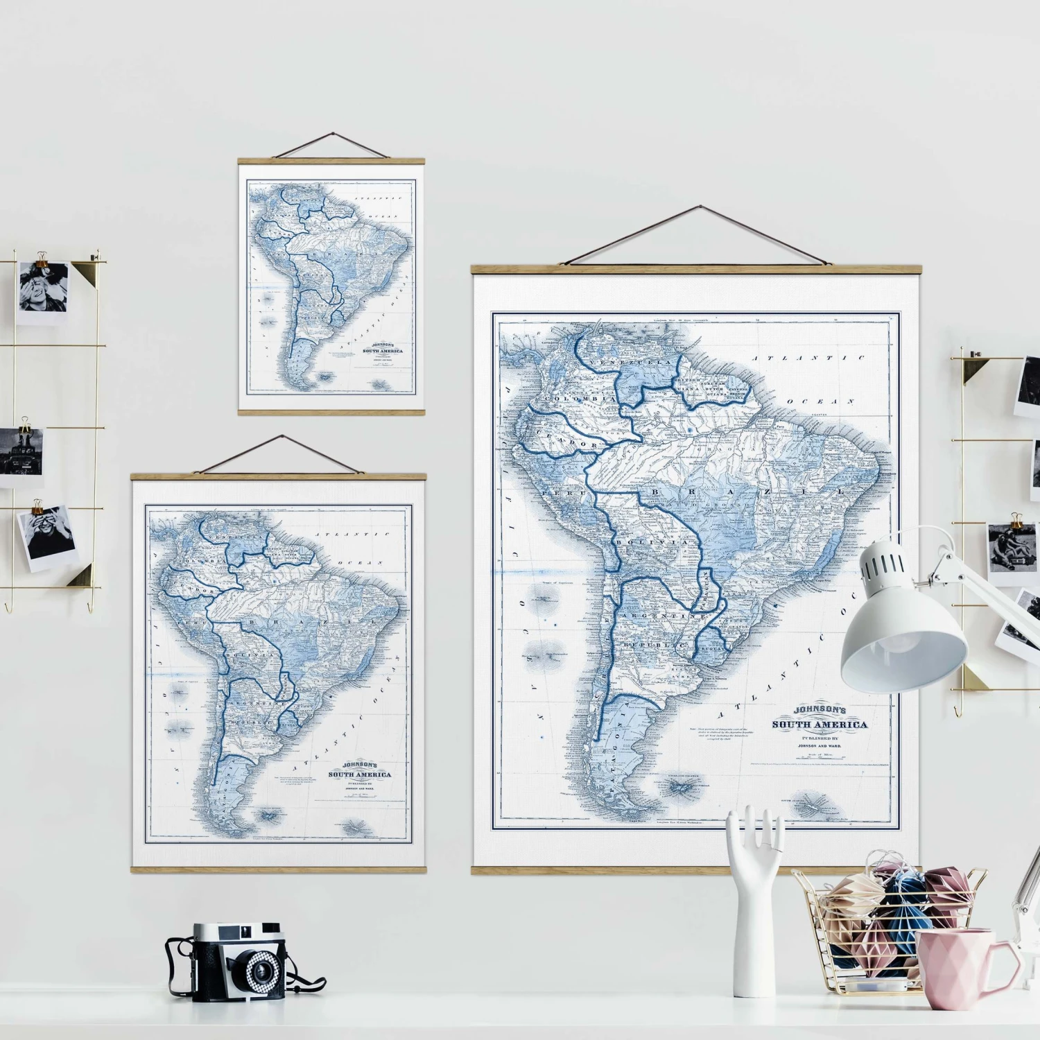 Stoffbild – Karte In Blautönen – Südamerika In Blau