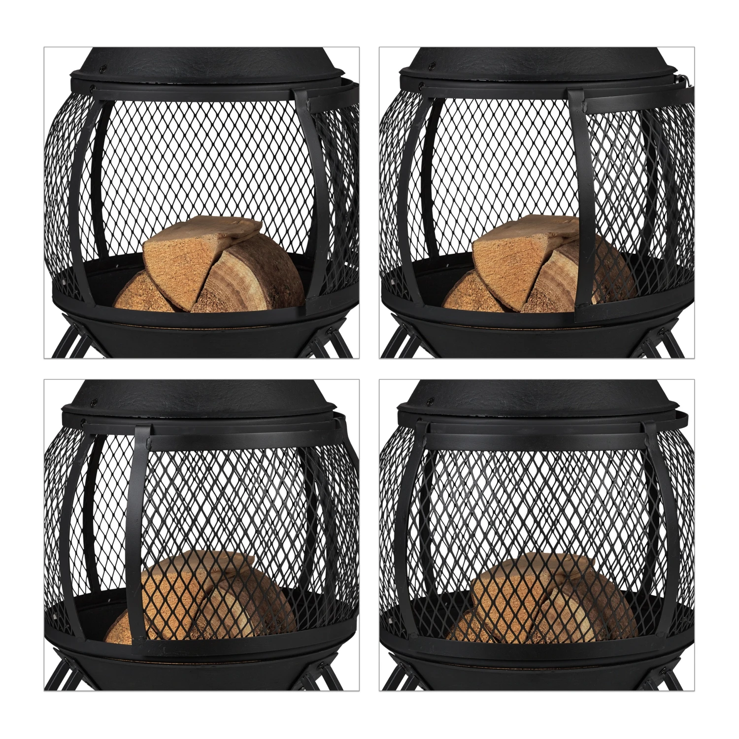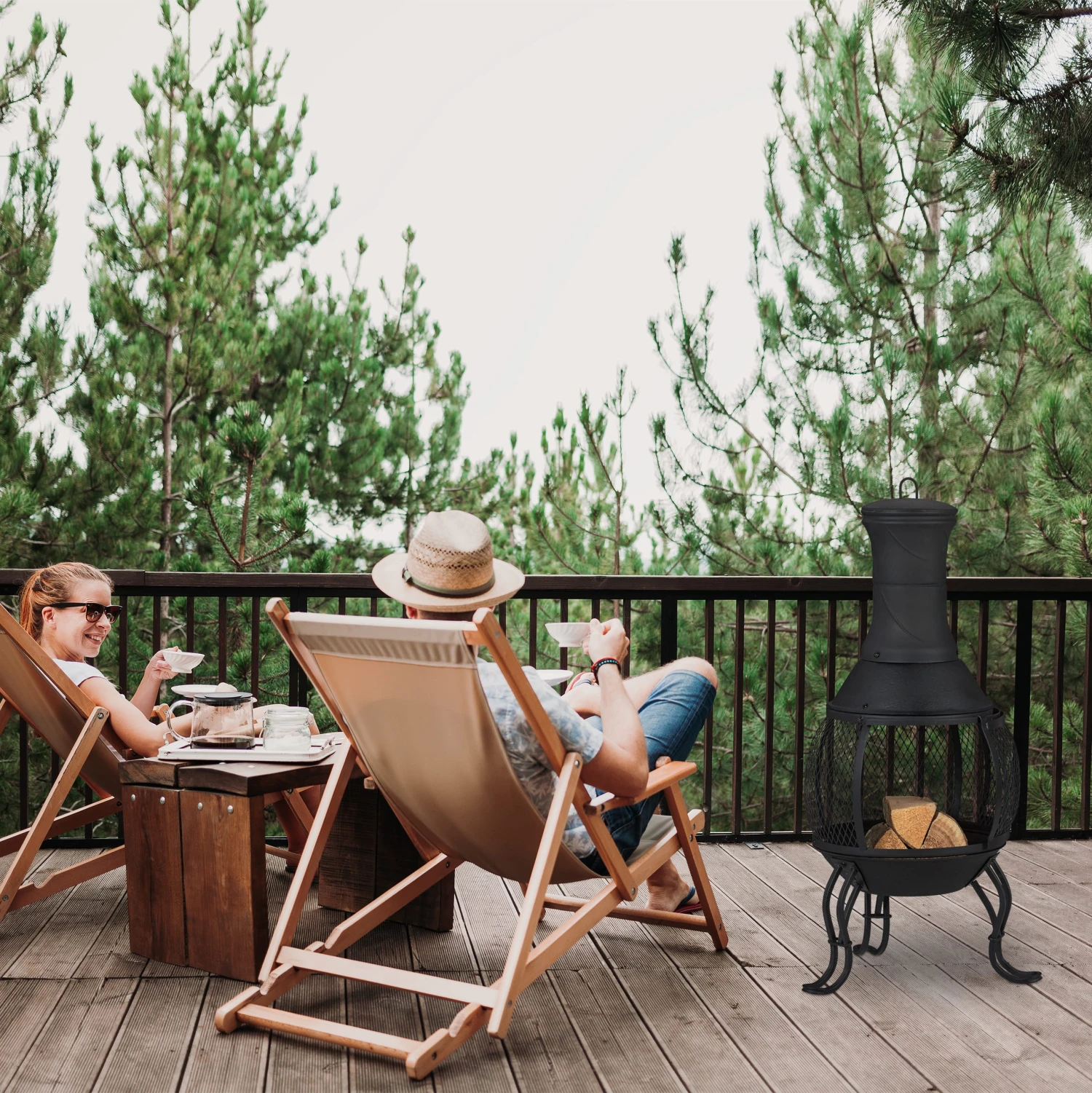– Robuster Chiminea in Schwarz mit dekorativen Details