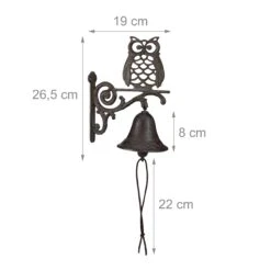 Ihr Eingangsbereich kann ein wenig dekorativen Charme vertragen? Dann ist die Türglocke aus Gusseisen eine klare Empfehlung. Die Glocke ist fest mit der Sitzstange verbunden, auf der es sich eine Eule gemütlich gemacht hat. Die grob strukturierte Oberfläche erweckt den Eindruck, als habe die Wandglocke schon so manches Jahrzehnt auf dem Buckel und präsentiert sich so im antiken Stil. Die nostalgische Variante zur schrillen Türklingel ist auch perfekt als Deko im Garten geeignet.