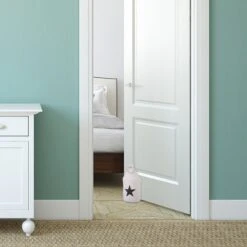 Der runde Türstopper aus Stoff überzeugt durch sein modernes Design mit einem dekorativen Stern auf der Vorderseite. Der Türpuffer muss nicht am Boden oder der Wand befestigt werden und kann durch den praktischen Metallring einfach angehoben und jederzeit flexibel neu platziert werden.