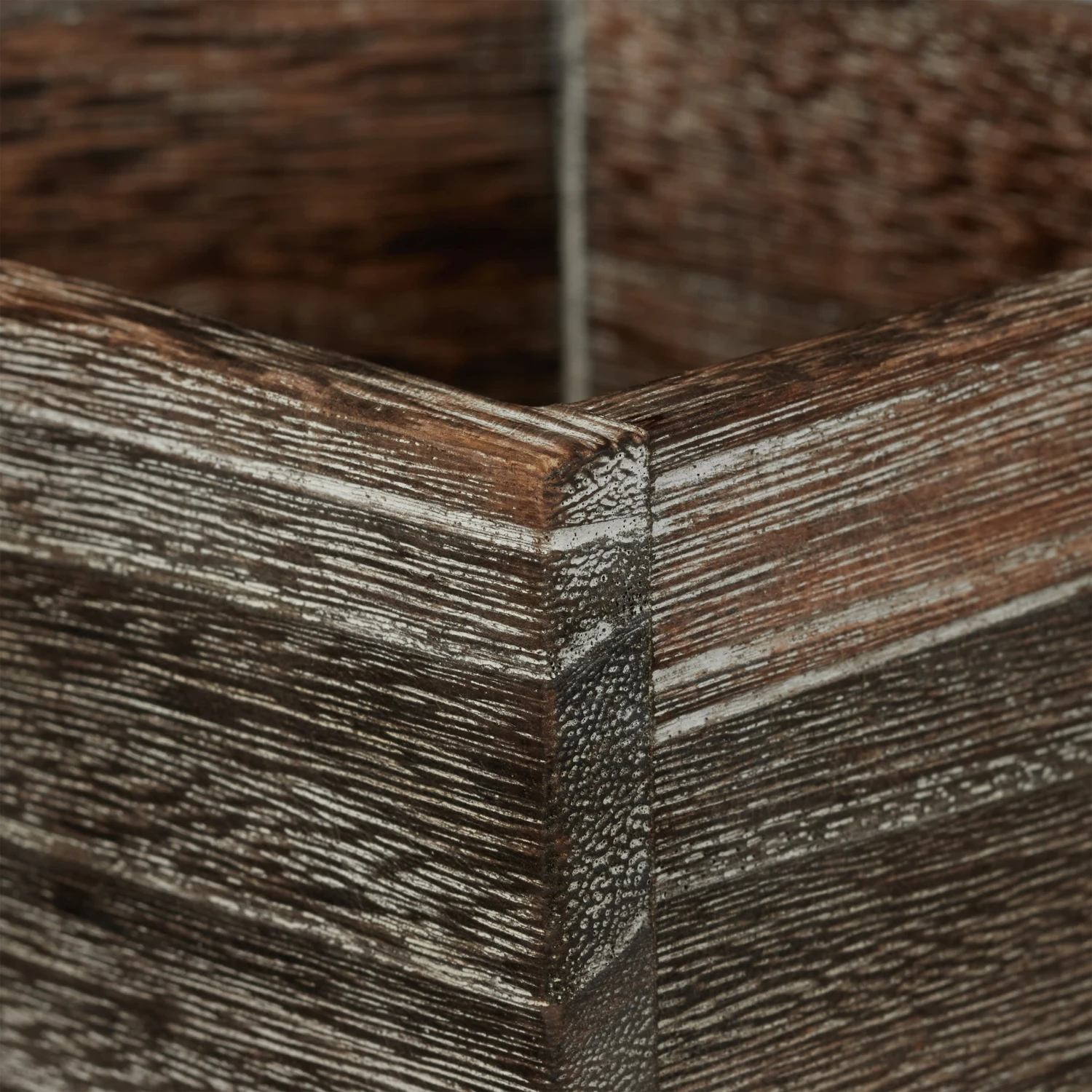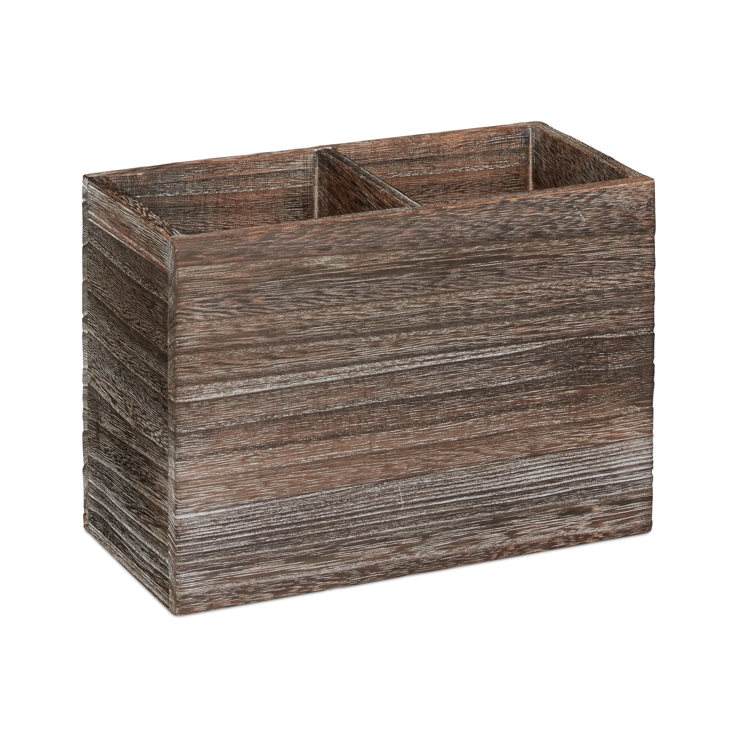 Der praktische Besteckbehälter aus Holz verschafft Ihnen Überblick in der Küche. Platzieren Sie ihn als Küchenutensilienhalter auf der Arbeitsplatte und haben Sie beim Kochen Pfannenwender und Schneebesen sofort griffbereit. Dank seinem rustikalen Design im Shabby-Look kann der Utensilienhalter auch als Besteckständer auf dem Tisch genutzt werden. Stellen Sie in dem Besteckkorb mit 2 Fächern je nach Bedarf Esslöffel, Gabel und Messer für Ihre Gäste bereit.