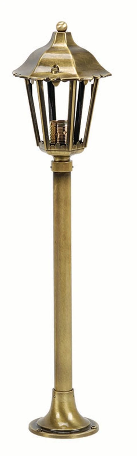 Fassung: 1x E27 bis 23W | Farbe: Messing antik | Material: Messing, Acrylglas | Spannung: 220V | Spritzschutzklasse:IP43 | Rustikale Wegeleuchte aus massivem Messing und robustem Acrylglas | Der Acrylglas Schirm ermöglicht eine großflächige Beleuchtung für mehr Sicherheit auf ihren Wegen, im Eingangsbereich und dem Garten | Das Design ist einer antiken Laterne nachempfunden und setzt überall dekorative Akzente | Sockel: Ø12cm | Echt-Messing: wetterfest; rostfrei selbst an Küsten | IP43: hoher Schutz vor Nässe | Handarbeit: Premium Qualität Made in EU